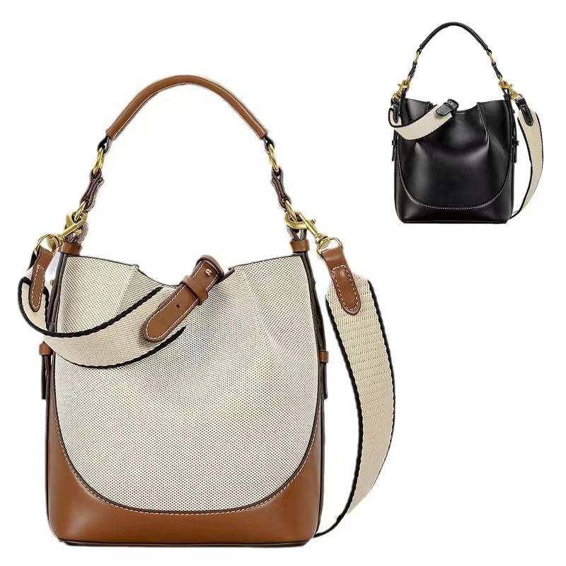 New Luxury Korean Brown PU Leather Crossbody Bucket Handbag for Women with Magnetic Closure Spring/Summer Portable