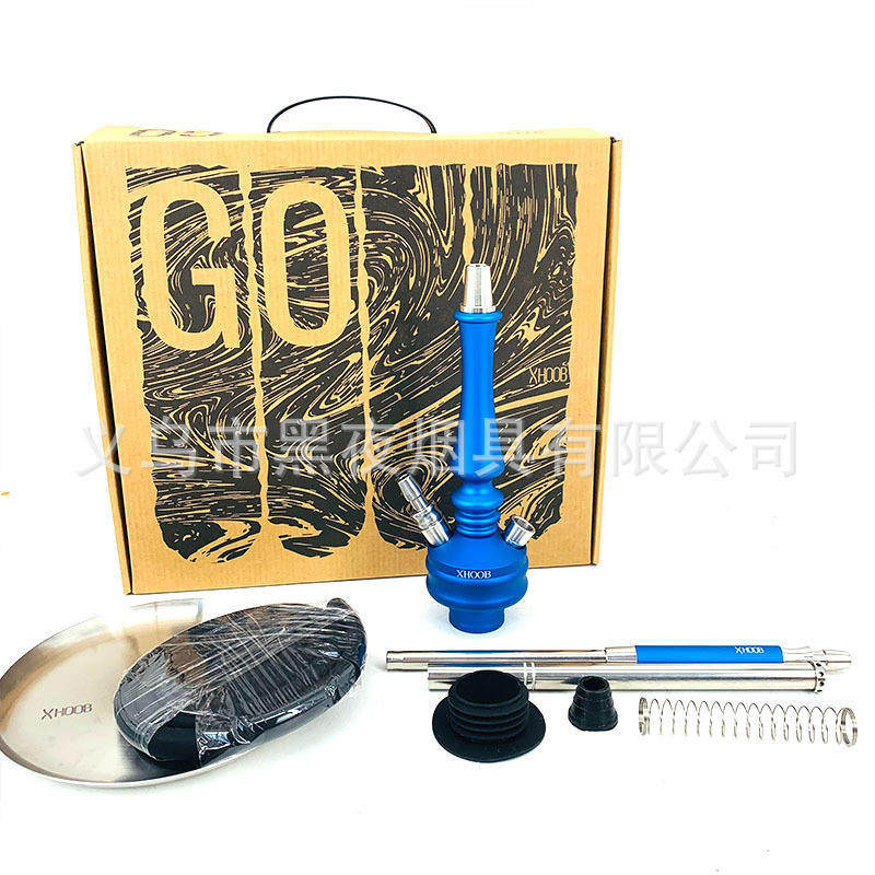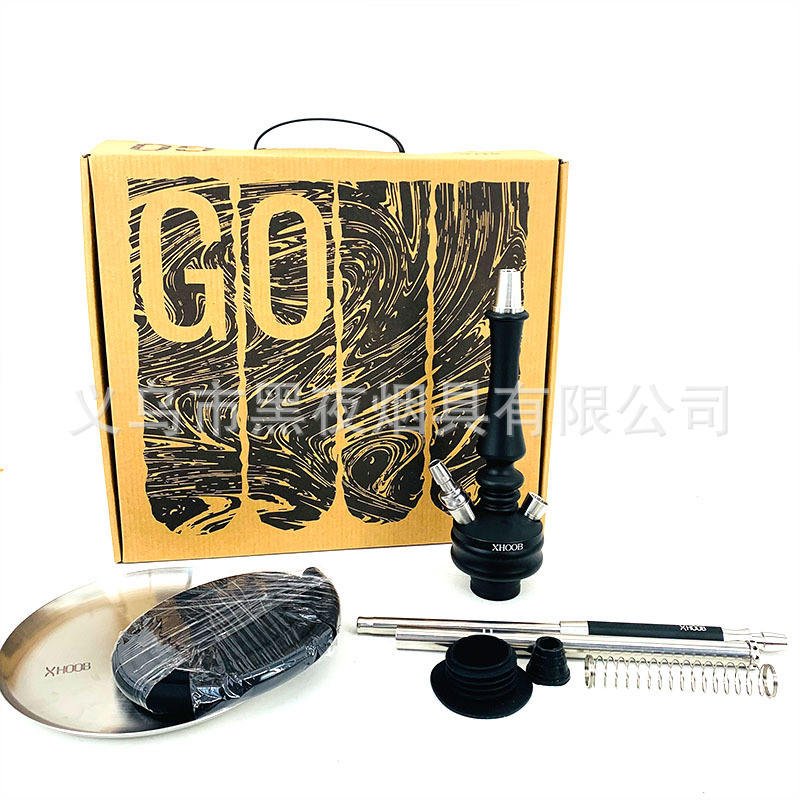 Nouvelle chicha portable de luxe en acier inoxydable laqué arabe avec grand foyer et coffret cadeau