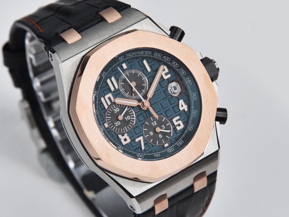 New Luxury Super quality mechanical watch Waterproof 42mm APF factory 3126 movement 26238 Chrono Two-tone rose gold blue watch