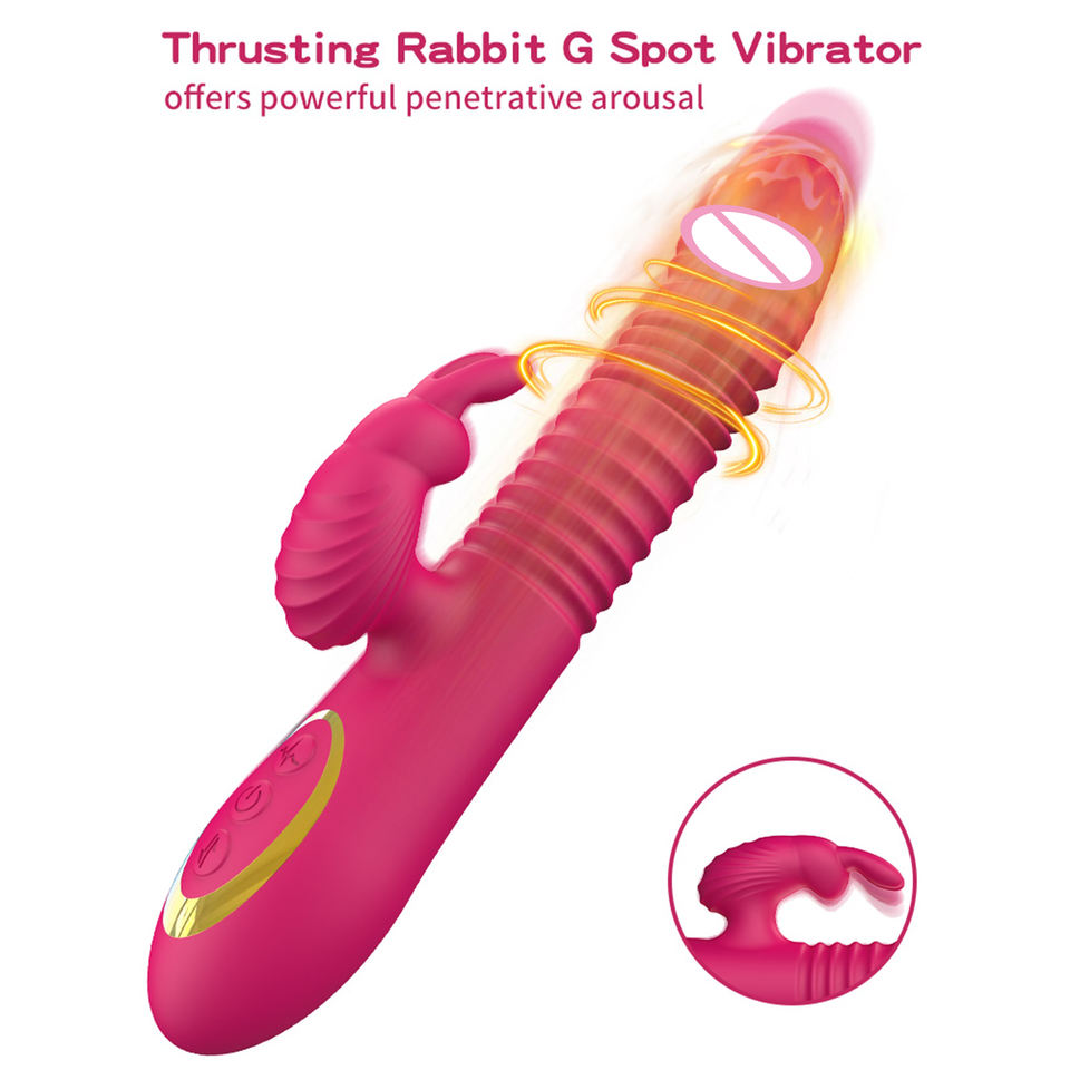 Rechargeable thrusting rabbit vibrator.