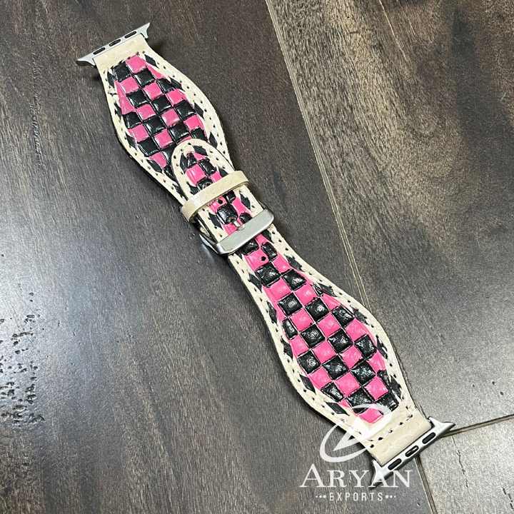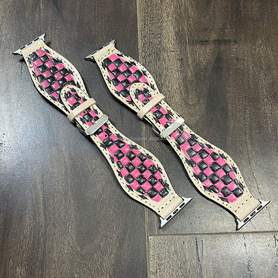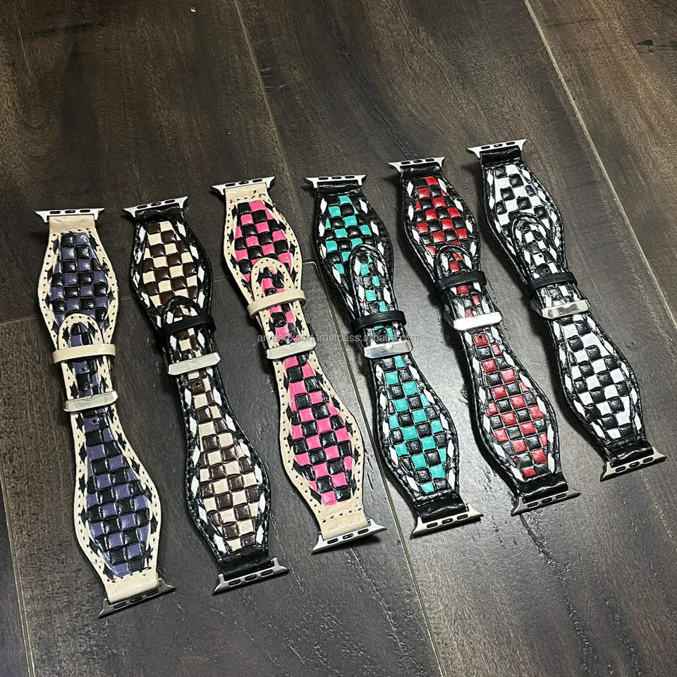 Product name:Hand Tooled Checkered Leather Smart Watch Band