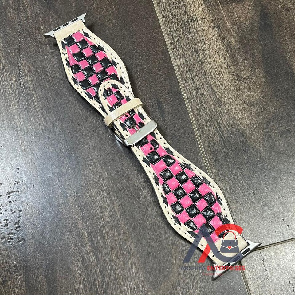 Hand Tooled Checkered Leather Smart Watch Band