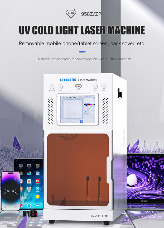 Nouvelles arrivées de machines TBK 958Z Plus Machine de gravure laser UV pour enlever le couvercle en verre arrière de l'écran LCD du smartphone et de la tablette