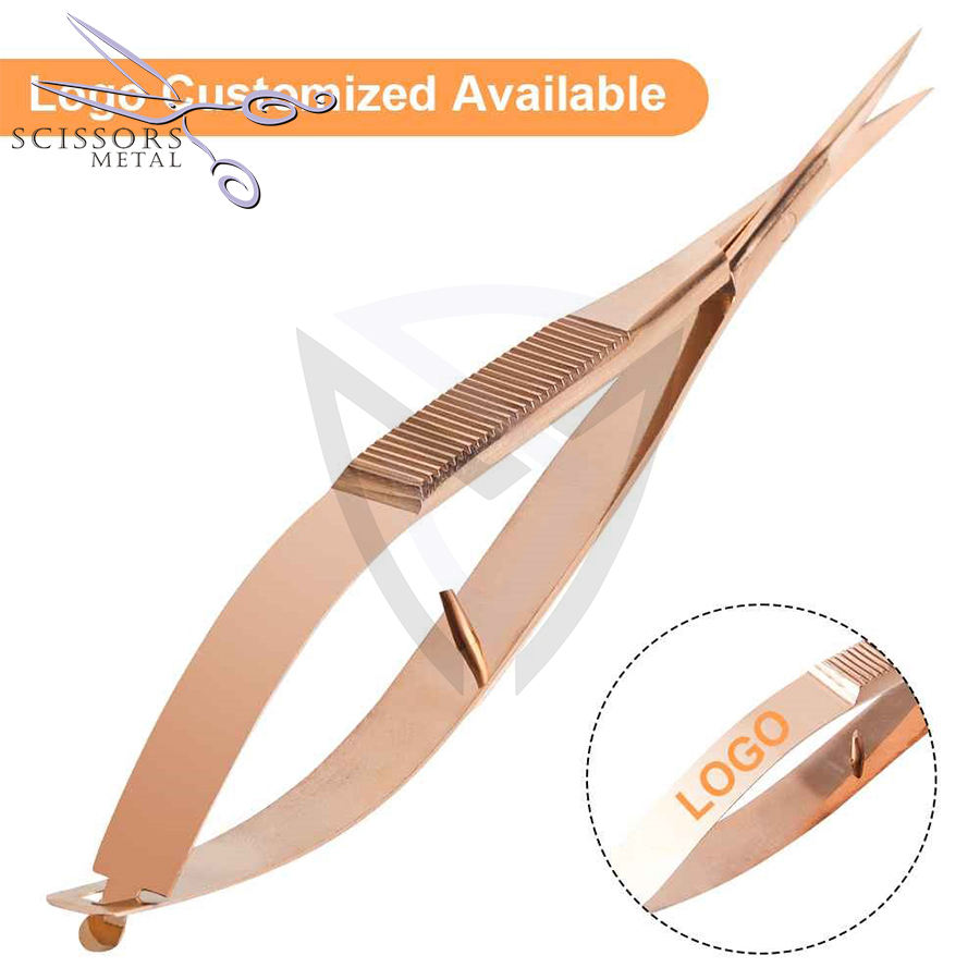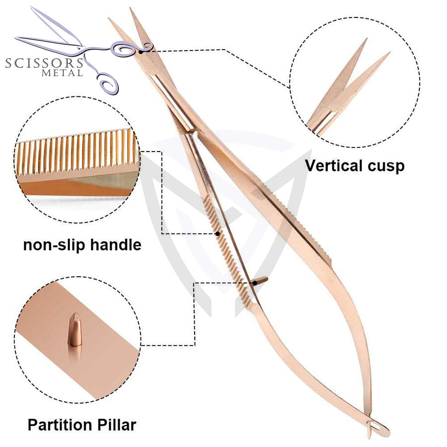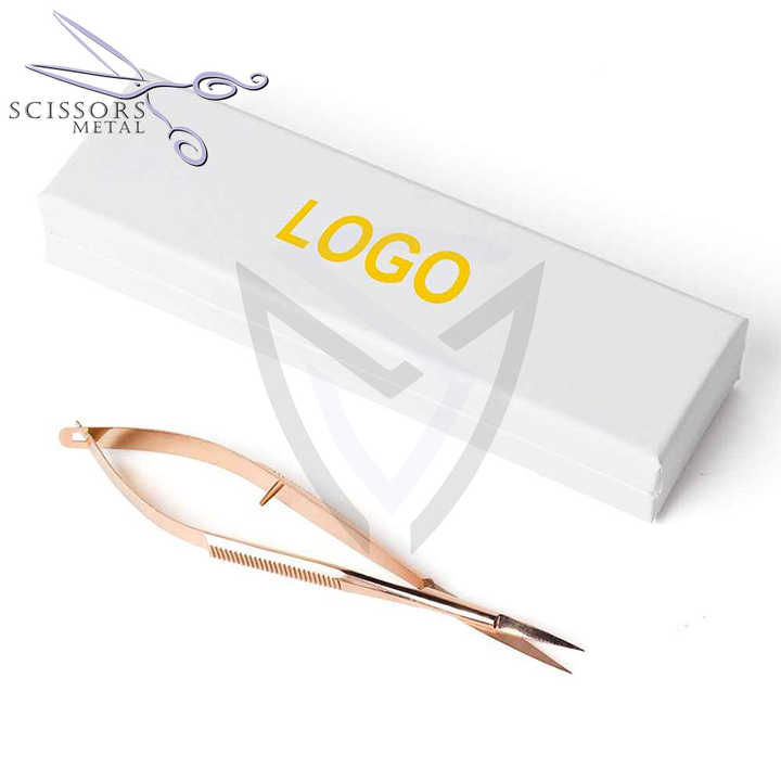 SCISSORS METAL Ciseaux à ressort micro sourcils/cils, acier inoxydable, extra‑tranchants, finition satin/miroir, 8 pièces