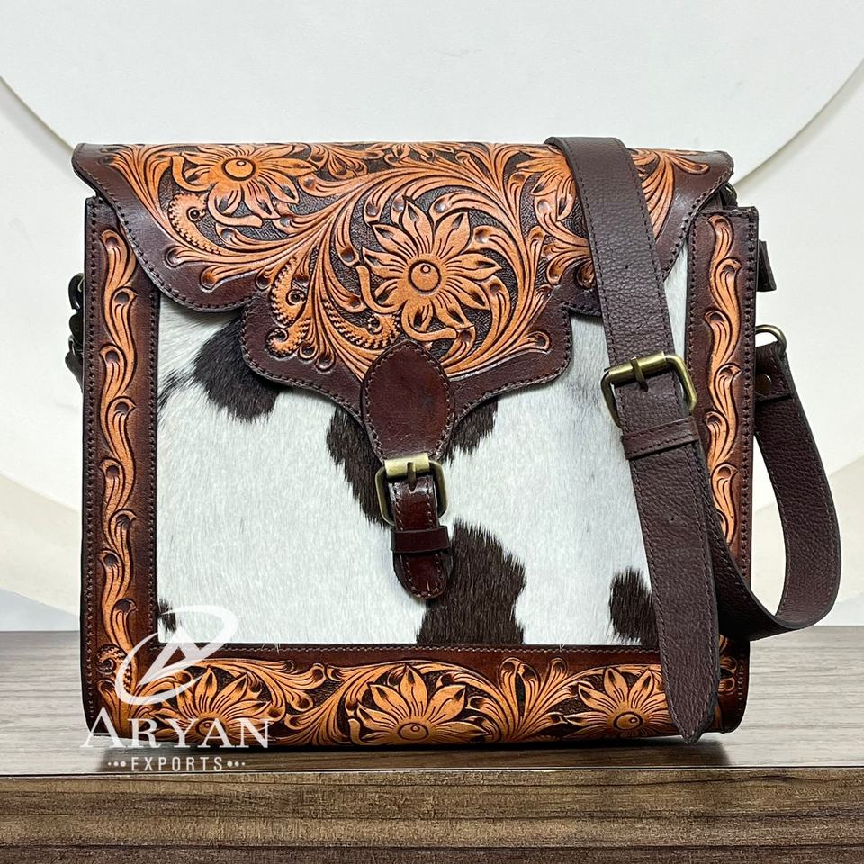 Product Name:Hand Tooled Cowhide Leather Handbag