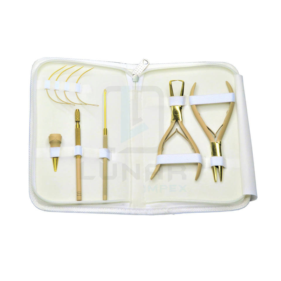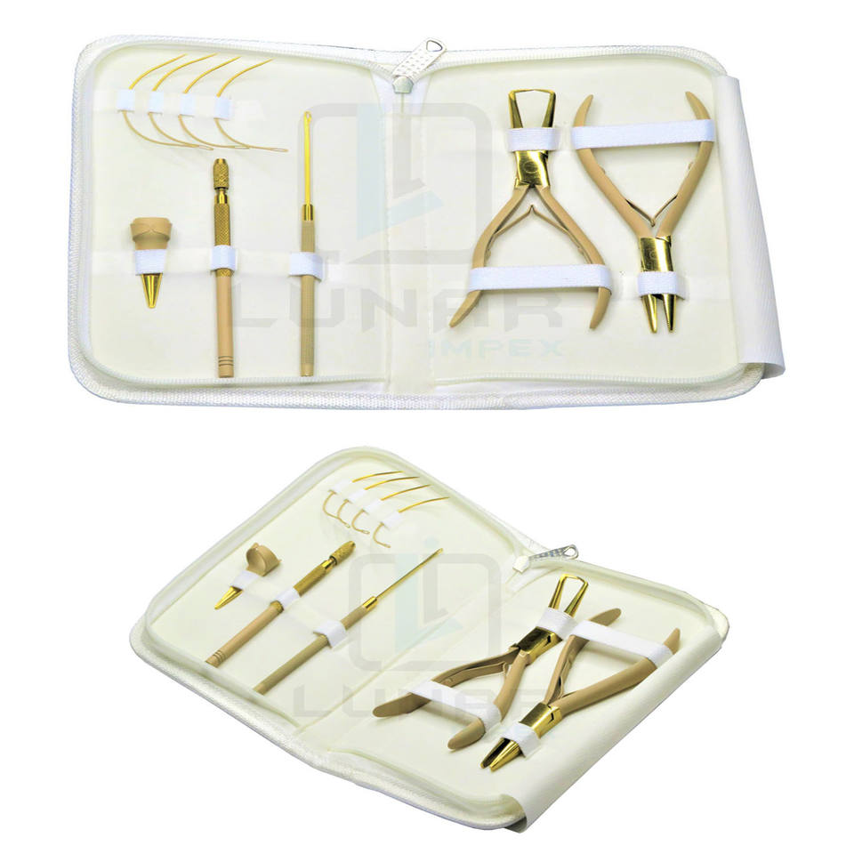 Nouveau Kit d'outils d'extension de cheveux de fabrication en couleur Plasma or bronzé avec étiquette de marque personnalisée gratuite sur les outils et sur le Kit