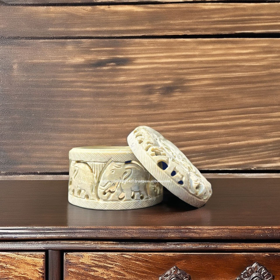 Nouveau matériel fait à la main produit de qualité Design Premium boîte de sculpture en stéatite avec utilisation brillante polie pour le cadeau de stockage de bijoux