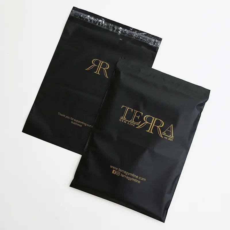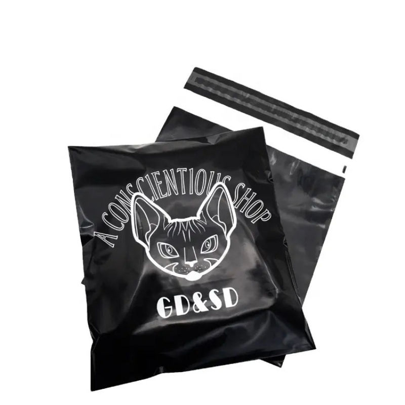 Nouvelles enveloppes en polyéthylène noires épaisses avec logo personnalisé imprimé, résistantes à l'eau et aux déchirures, pour l'envoi par courrier