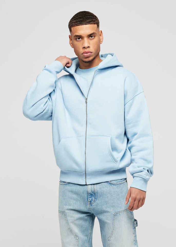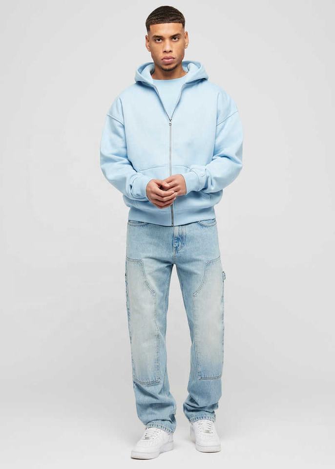 Nouveaux hommes 100% coton Logo personnalisé épaules tombantes sweats à capuche double fermeture éclair sweat à capuche pull surdimensionné poids lourd hommes à capuche