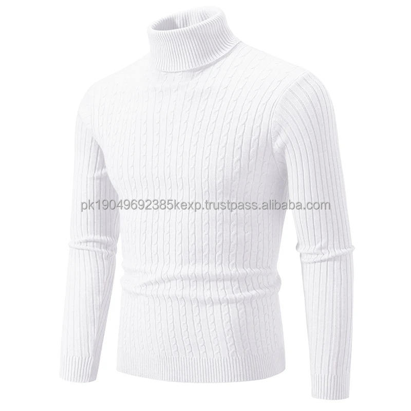 Nouveau pull col haut pour hommes couleur unie pull tricoté chaud décontracté col roulé sweatwear laine hommes hiver extérieur hauts