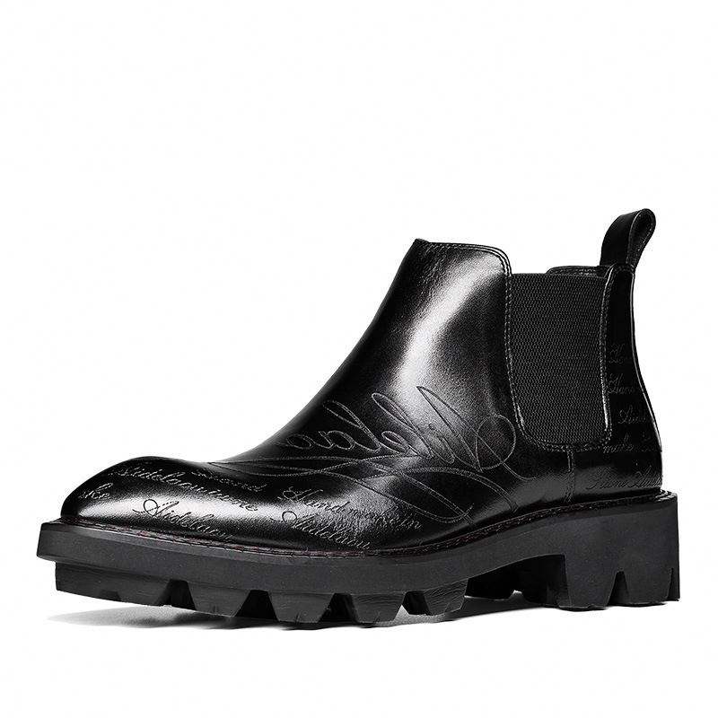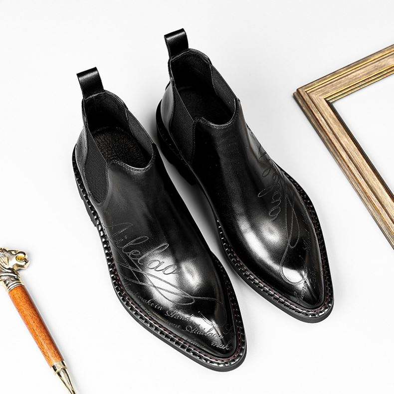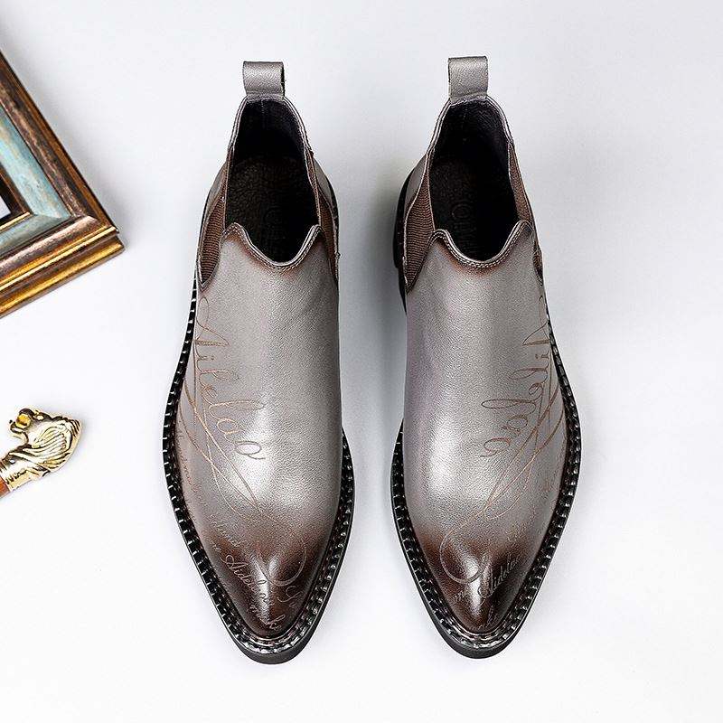 Nouvelles bottes Chelsea rétro pour hommes en cuir véritable à bout pointu, avec semelle épaisse, hauteur rehaussée, fermeture à enfiler et design respirant