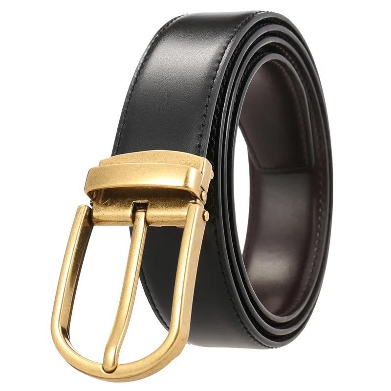 Nouvelle ceinture réversible pour homme en cuir de vache naturel, boucle en acier argentée, ceinture en cuir véritable marron pour pantalon