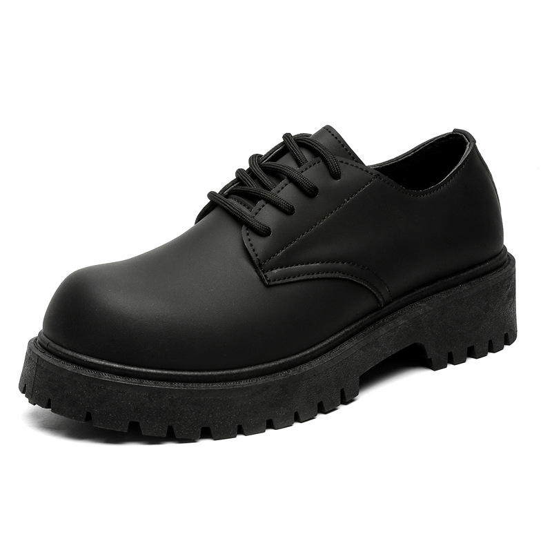 Nouvelles Chaussures Derby Montantes Imperméables pour Hommes, Style Parisien, Talon Épais, Rehaussantes, en PU Noir, Tendance, Haut de Gamme, Style Preppy Britannique, pour Campus et Tenues Habillées