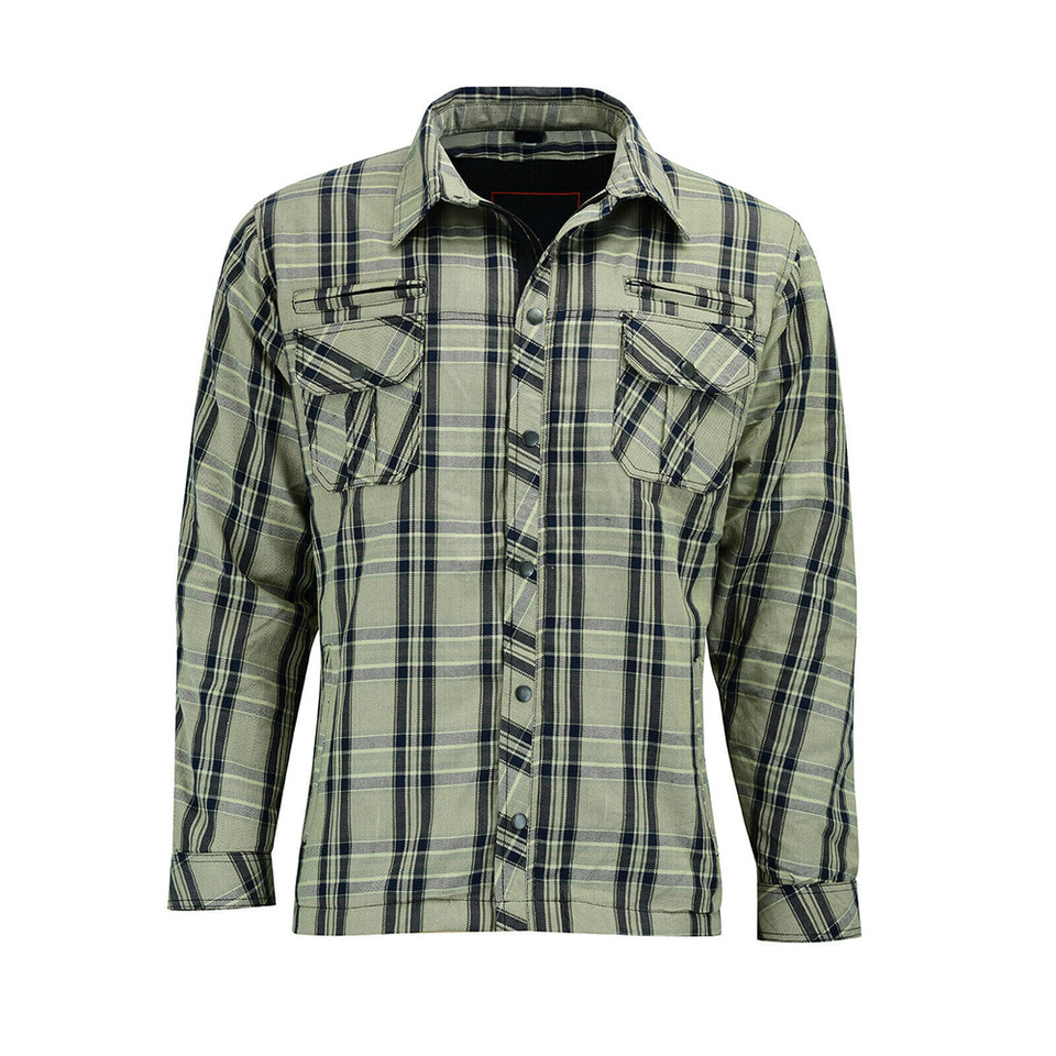 New Mens Light Green and Black Custom Made Plaid Flannel T shirt protective shirt for bikers safety made in Pakistan OEM