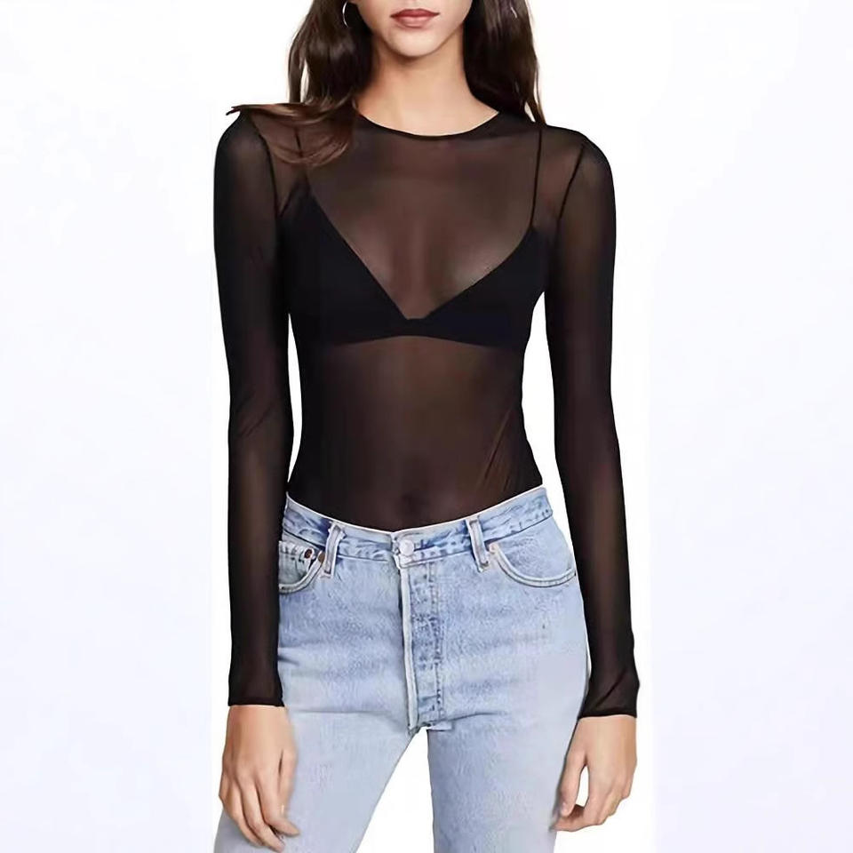 Nouveau T-shirt moulant en maille transparente à manches courtes pour femme – Tendance et sexy