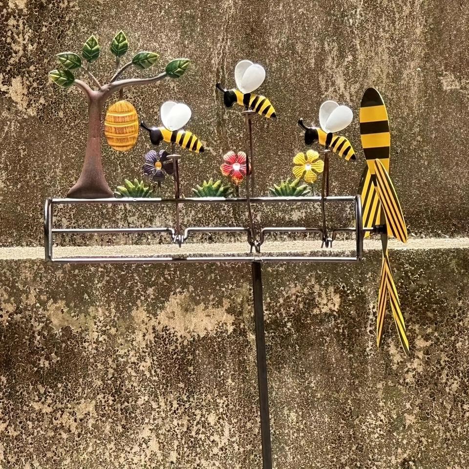 Nouvelles éoliennes en métal en forme d'abeille, trois petites éoliennes en forme d'abeille pour le jardin et la décoration de jardin