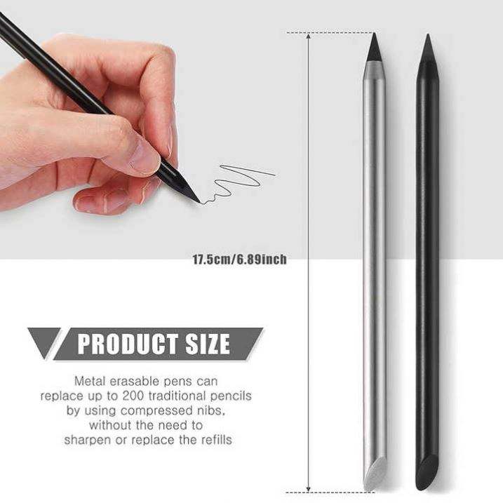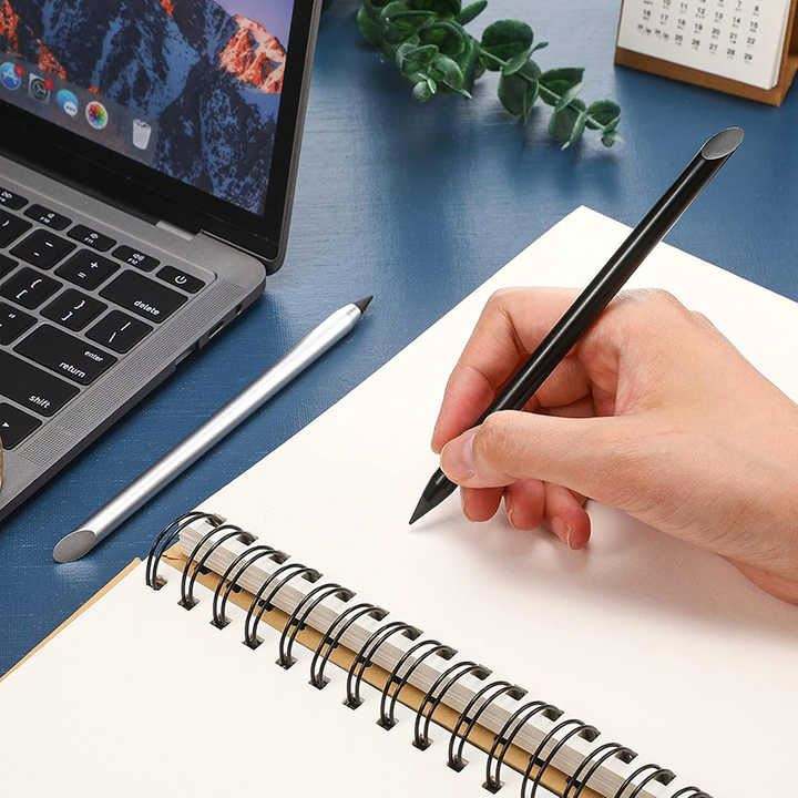 Nouveau crayon métallique personnalisable avec logo, effaçable, éternel, durable, pointe d'écriture sans encre, en aluminium