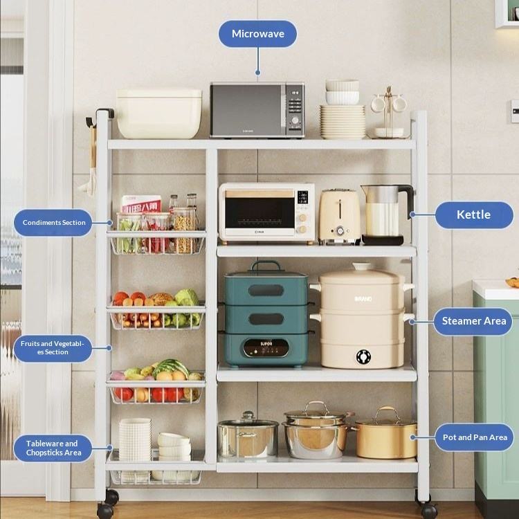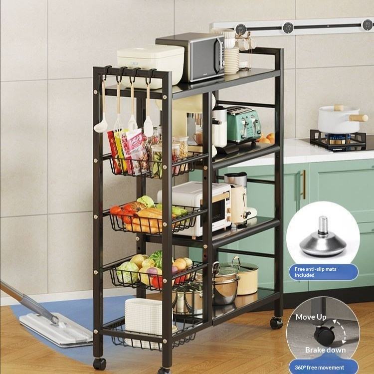 Nouvelle étagère de cuisine en métal, debout, mobile, non pliable, à quatre niveaux, multifonctionnelle, pour four à micro-ondes, simple et moderne