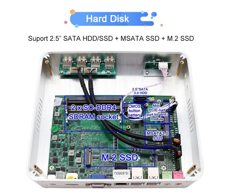 1 * M.2 + 1 * MSATA3.0 SSD + 1 * SATA3.0 HDD