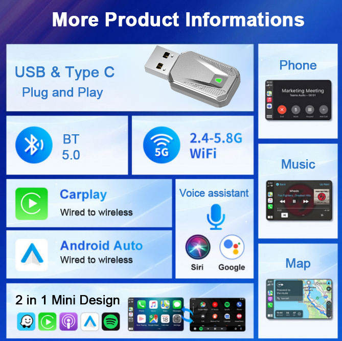 Nouvel adaptateur sans fil CarPlay Android Auto intelligent 2 en 1 pour Peugeot 208 308 408 508 2008 3008 4008 5008
