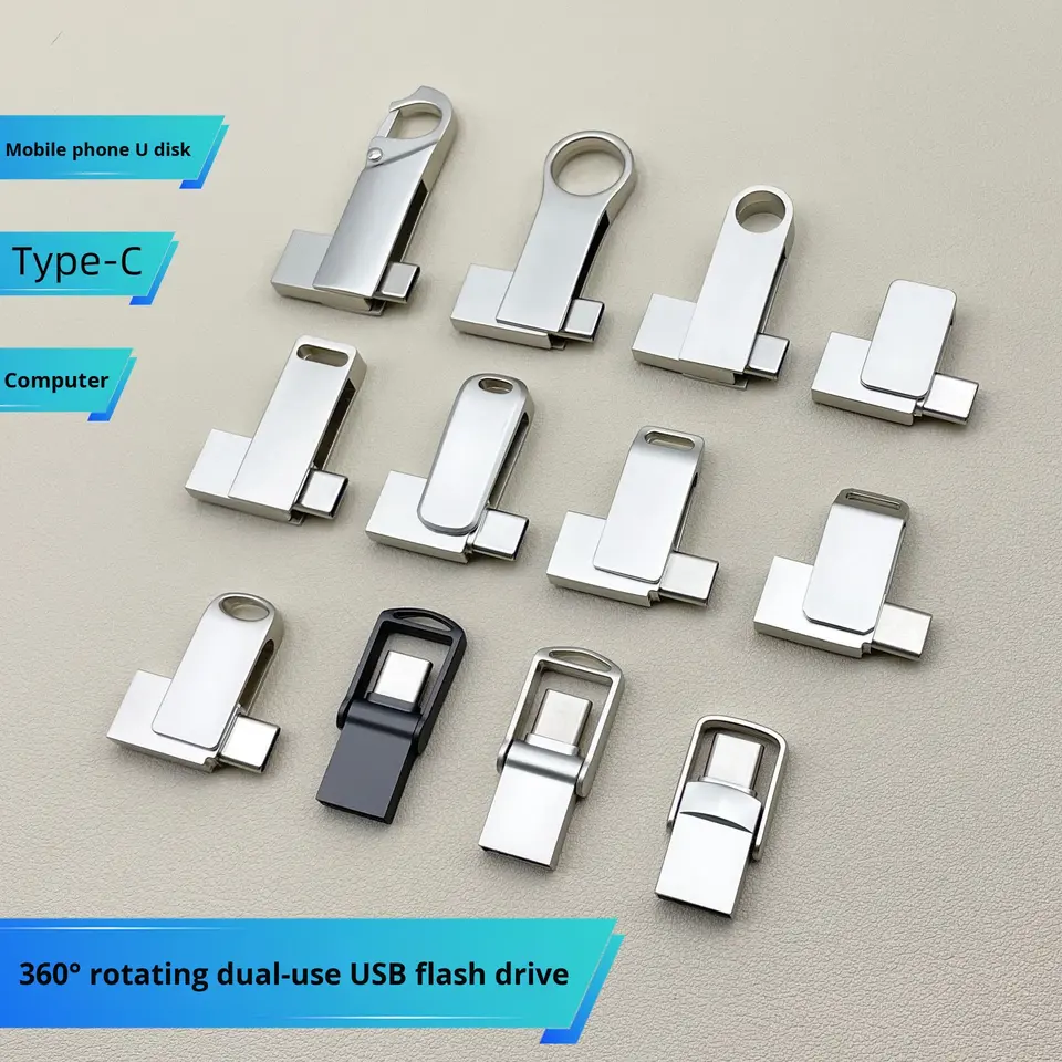 Nouvelle clé USB rotative mini en métal à double usage pour téléphone portable et ordinateur, 32G/16G, haute vitesse, transfrontalière, avec garantie d'un an