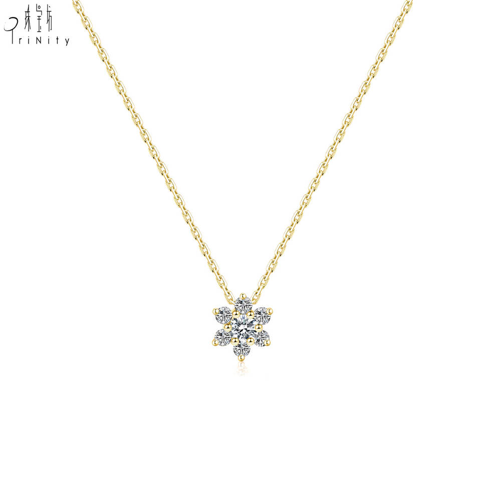 Fournisseur de Hong Kong, vente en gros, collier pendentif flocon de neige en or massif 18 carats, diamant naturel véritable, style tendance, pour filles, cadeau d'anniversaire