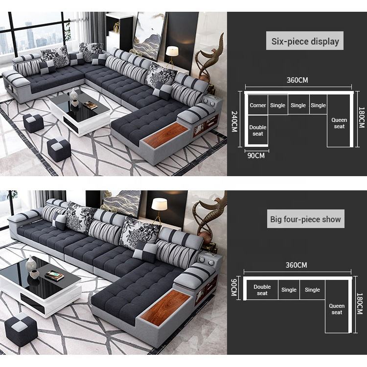 Nom du produit:Sofa sectionnel en U moderne de ressort de 7 places de Latex de meubles réglés