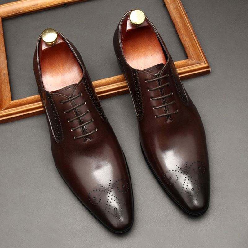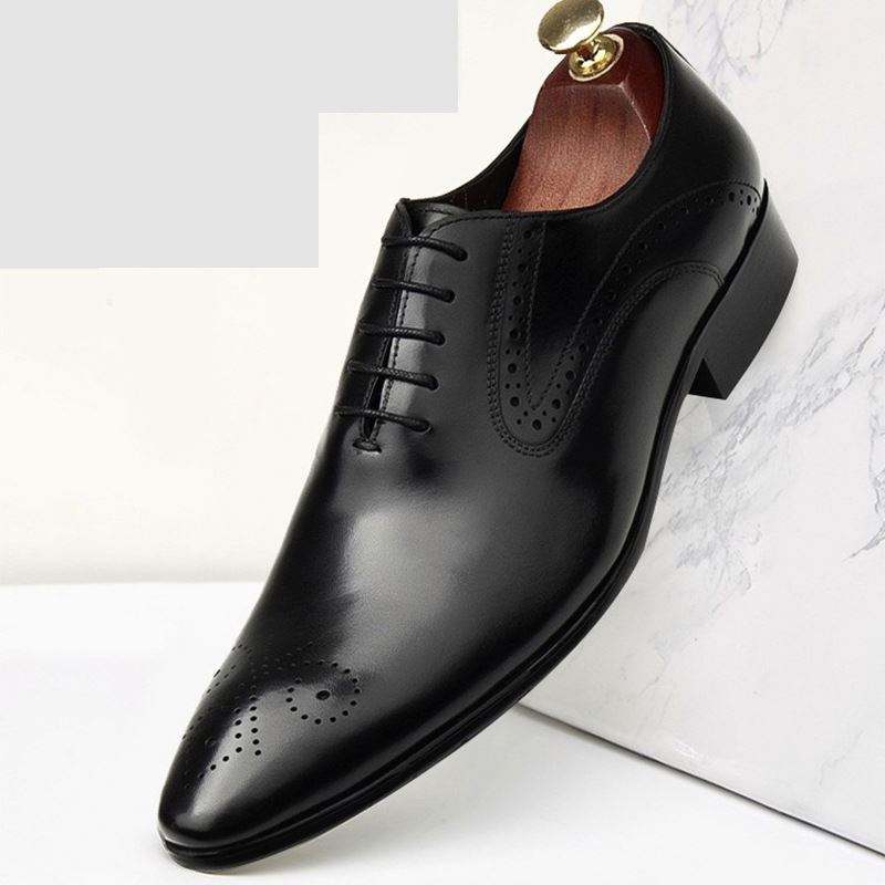 Nouvelles Chaussures Oxford en Cuir pour Hommes Brookes à Bout Pointu Gravé - Légères, Respirantes, Confortables, Formelles, Décontractées, Habillées