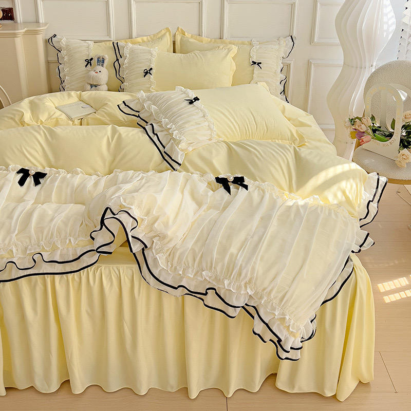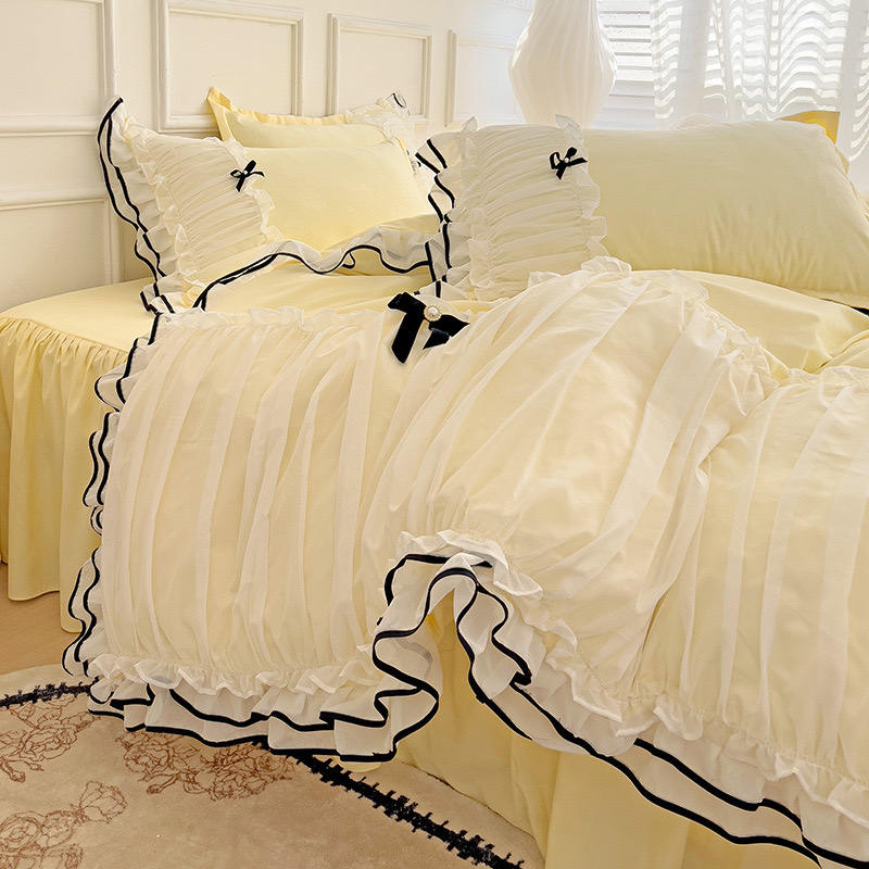 Nouveau modèle jupes de lit à volants en dentelle pleine grandeur à volants avec plate-forme en coton à chute profonde draps de lit pour filles