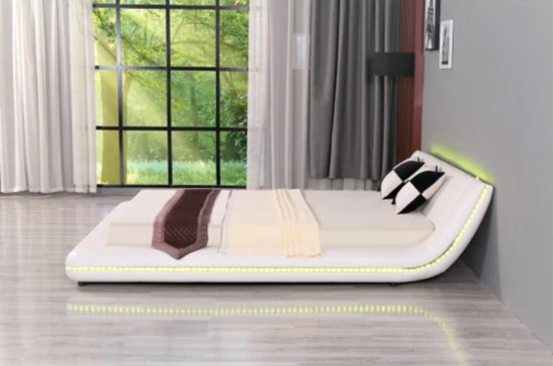 Nouveau modèle de cadre de lit en cuir, forme incurvée, simili cuir, lit double