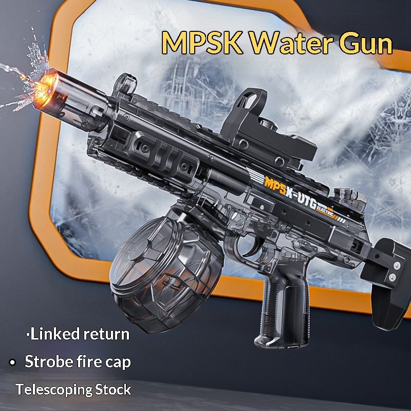 Nouveau modèle MP5K Pistolet à eau électrique en plastique, tir automatique continu, recharge rapide, pour le Festival de l'eau 2026, boîte couleur