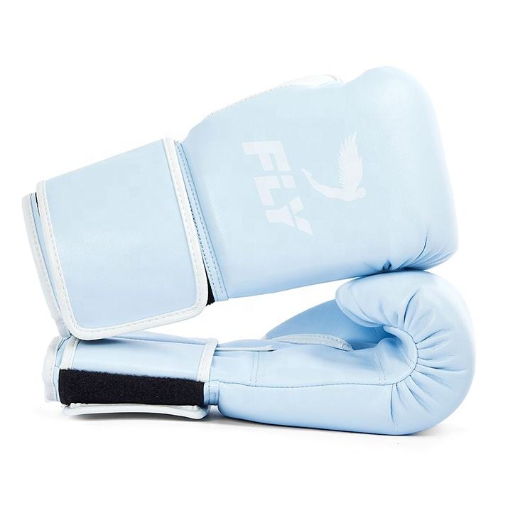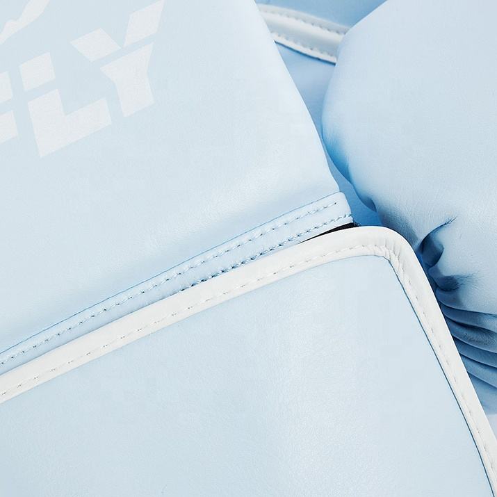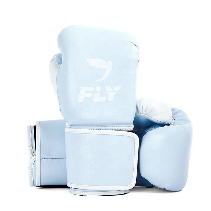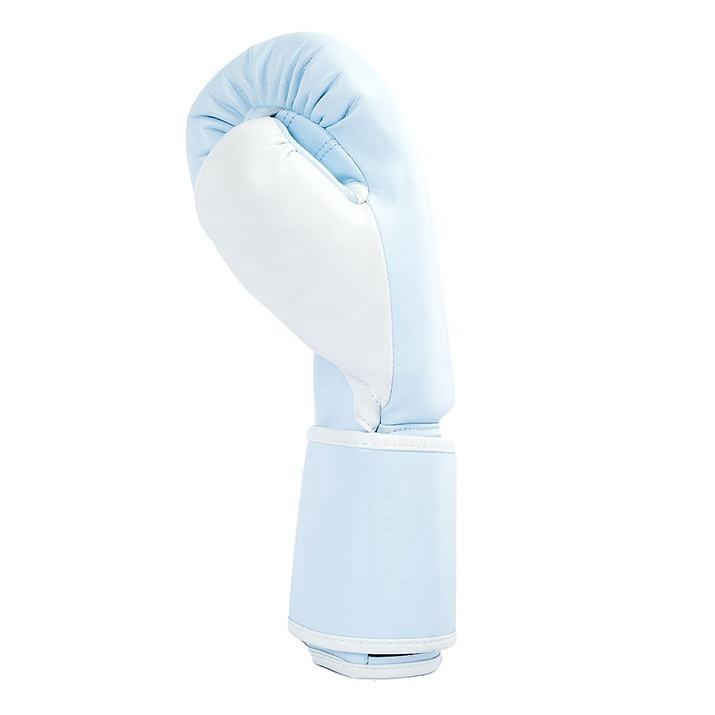 Nouveau modèle de gants de boxe professionnels à lacets pour l'entraînement au kickboxing, sangle bleue, logo personnalisé, cuir véritable confortable, Muay
