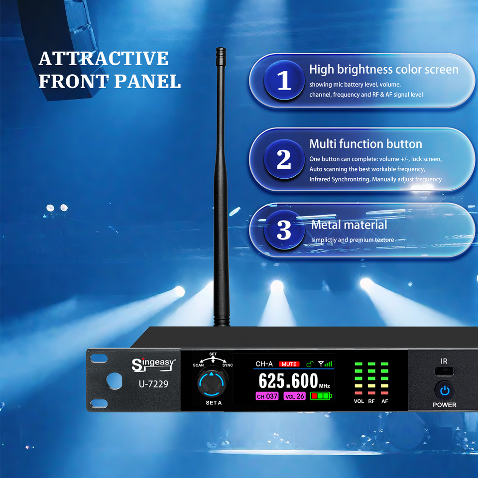 Nom du produit:Microphone dynamique sans fil UHF Digital Auto Scanning