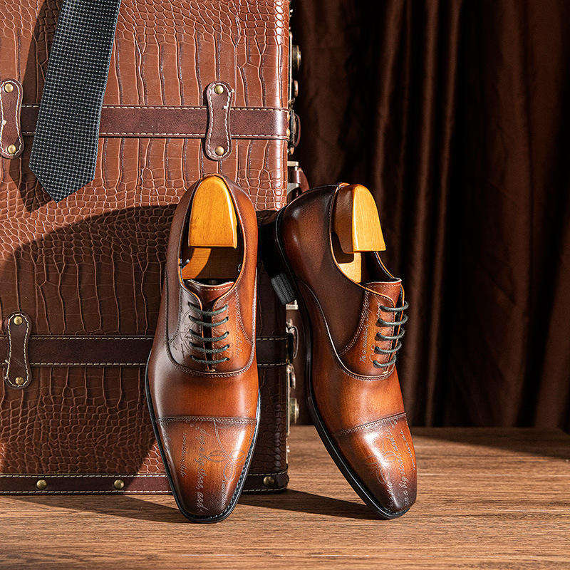 Nouvelles Chaussures Oxford à Embout en Acier – Cuir Véritable, Habillées, Formelles, de Bureau, Haut de Gamme, à Enfiler, Polies à la Main pour Hommes