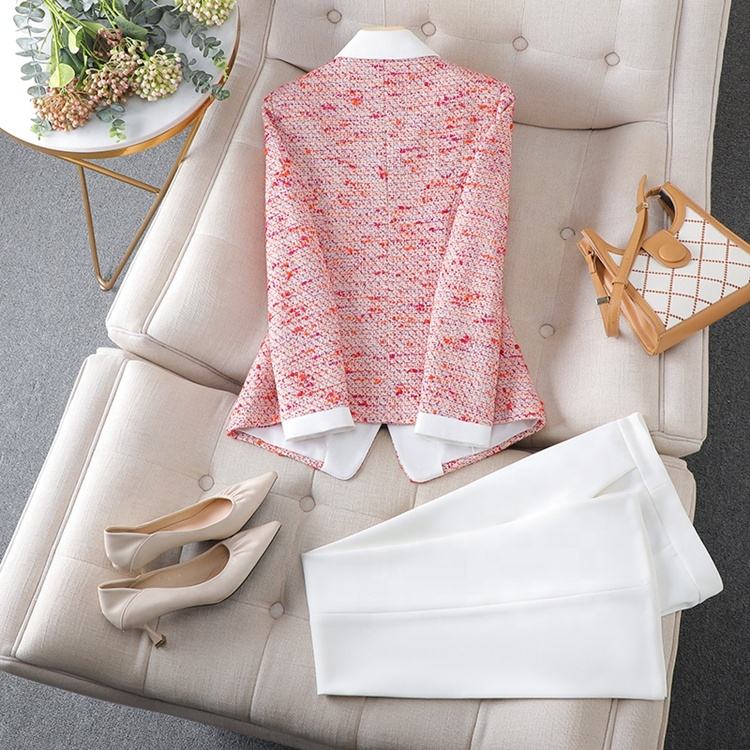 Nouveaux modèles de costumes de bureau pour femmes, ensemble deux pièces avec blazer à fermeture éclair et pantalon, style OL, costume de bureau pour femmes