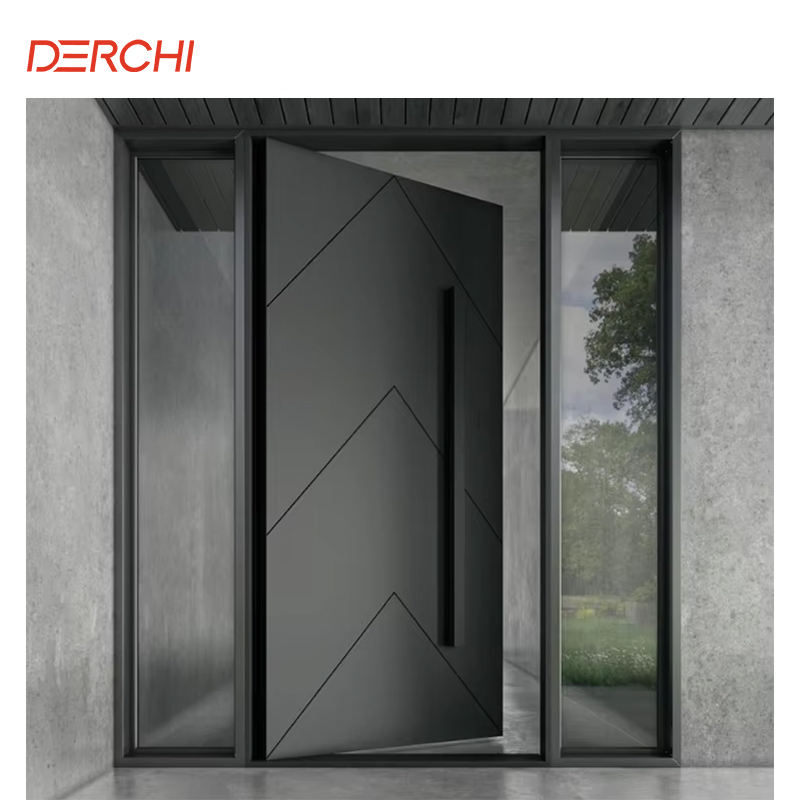 Nouvelle porte d'entrée principale en aluminium personnalisée de conception moderne utilisée pour une maison de luxe européenne avec poignées verticales