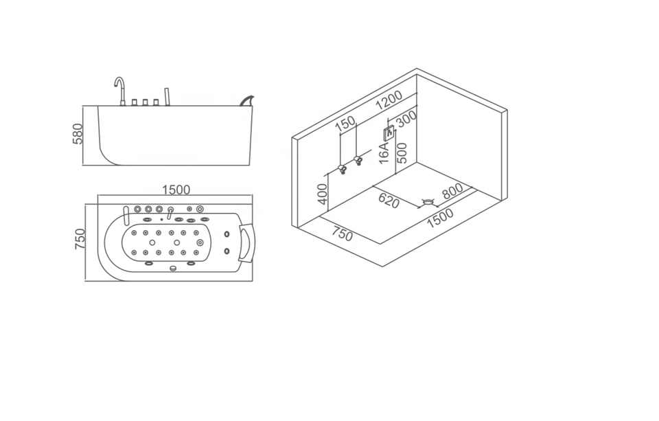Nom du produit:Combiné de massage Baignoire à remous Spa