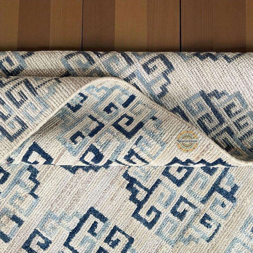Tapis moderne géométrique noué à la main en laine écologique lavable OUSHAK pour la maison, la chambre, le salon, la salle à manger et le bureau