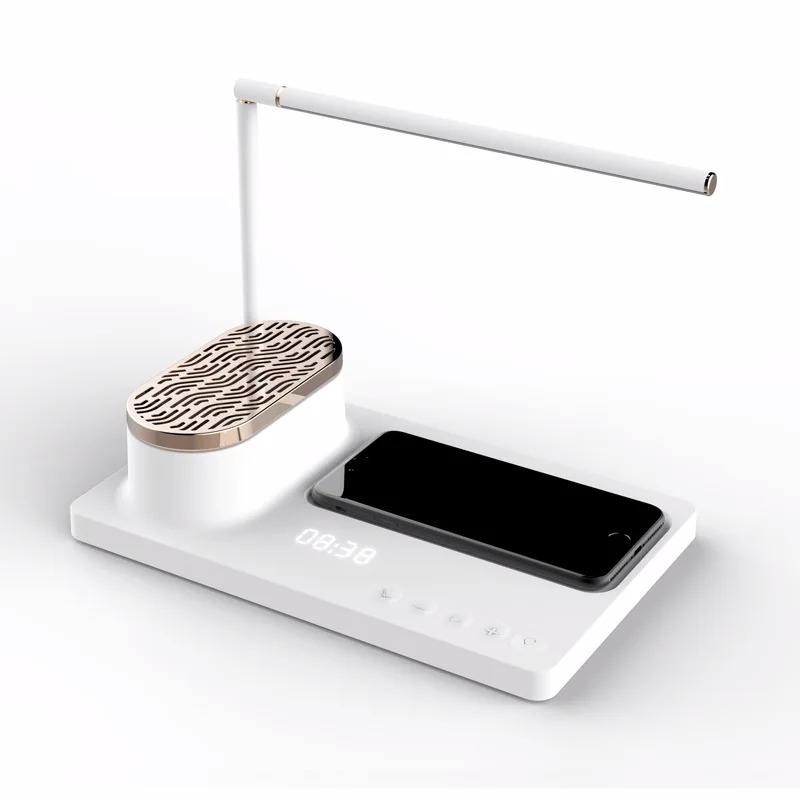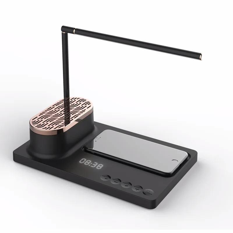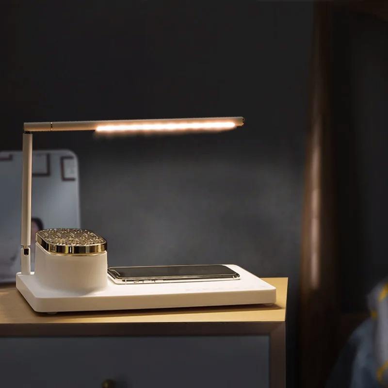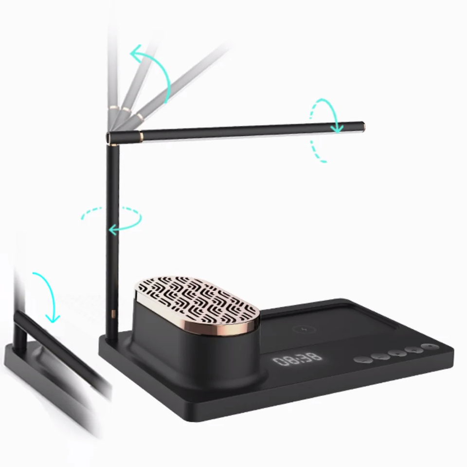 Nouvelle lampe de bureau créative moderne à énergie éolienne avec chargement sans fil, audio Bluetooth multifonction, protection oculaire, idéale comme cadeau