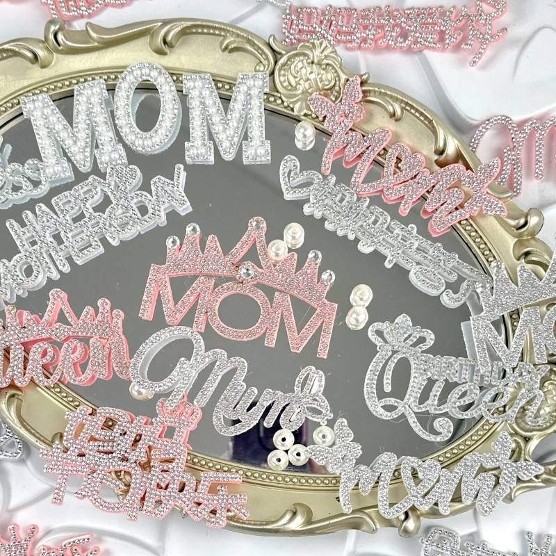 Nouveau Topper de Gâteau en Feutre pour la Fête des Mères avec Strass « Maman, je t'aime » Joyeuse Fête des Mères Insert de Gâteau Diamant