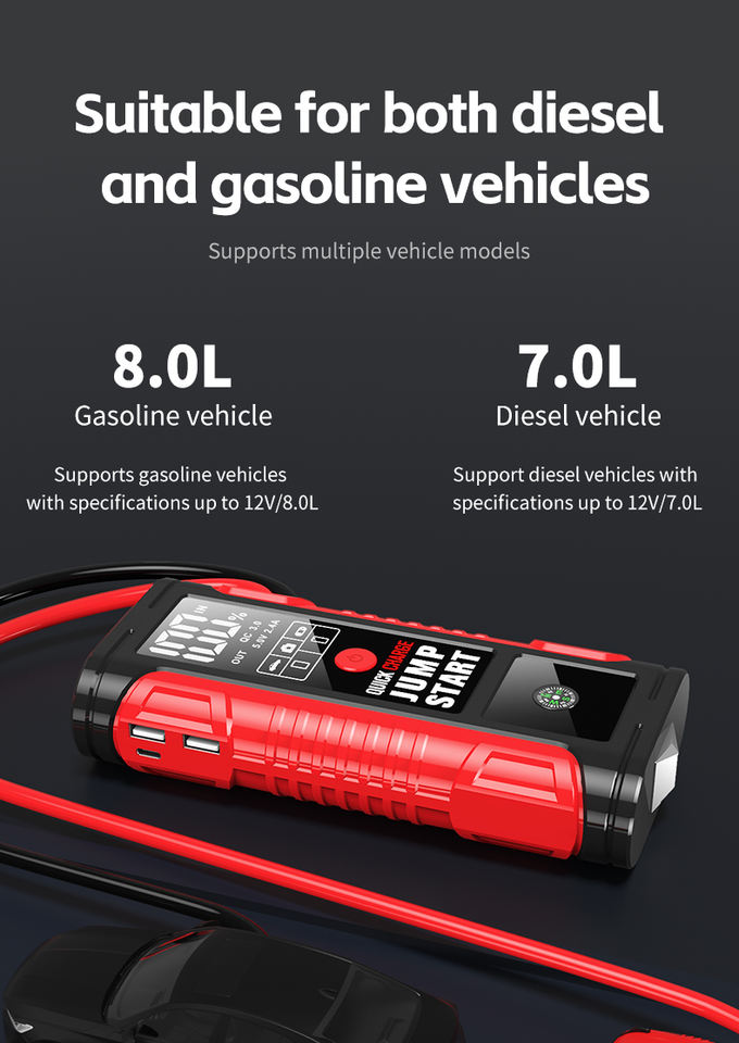 Éclairage LED, Anti-étincelles, Écran numérique, démarreur de batterie