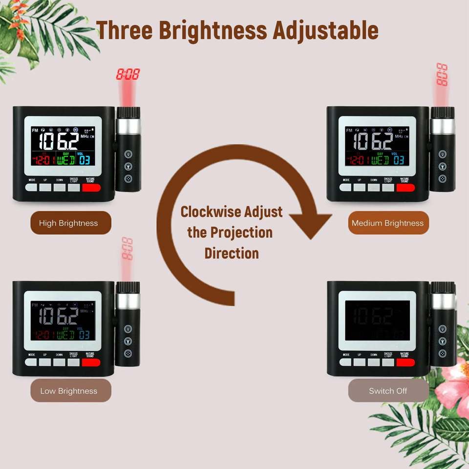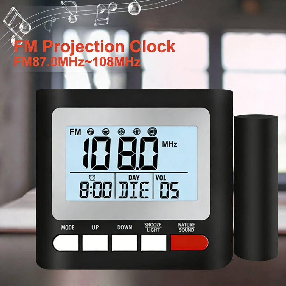 Nouvelle horloge de table de bureau numérique multifonctionnelle avec projection, radio FM électronique, touches tactiles, affichage de la température et de l'humidité, date, fonction snooze