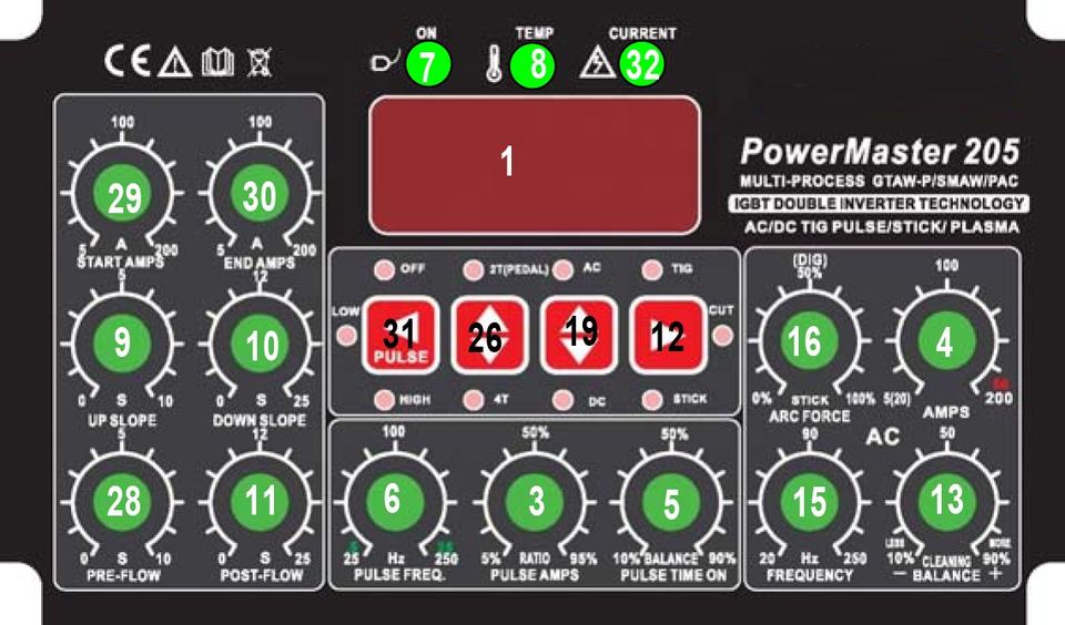 TIG: 5-200A, MMA: 5-160A, COUPE: 20-50A