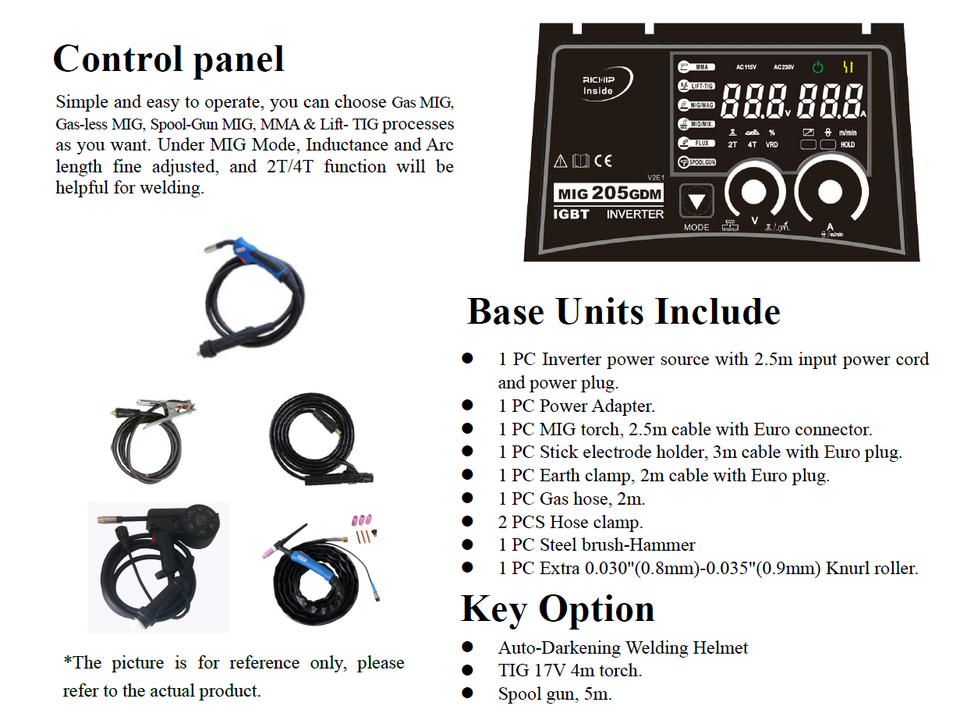 Nouvelle soudeuse multi-processus MIG 165/185/205GDM 230V économique, compacte et efficace 5-en-1 avec pistolet à bobine, prête pour l'acier inoxydable