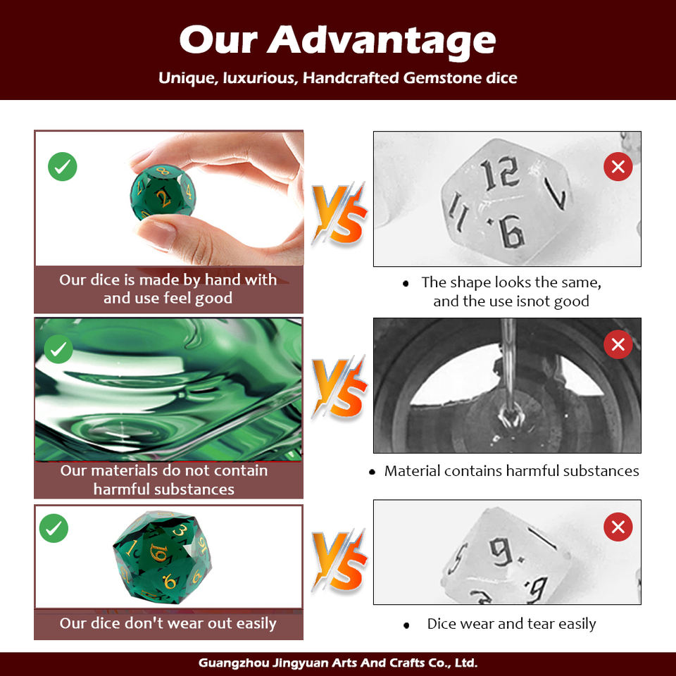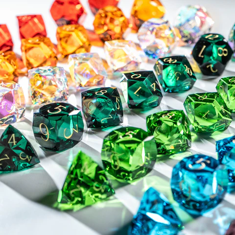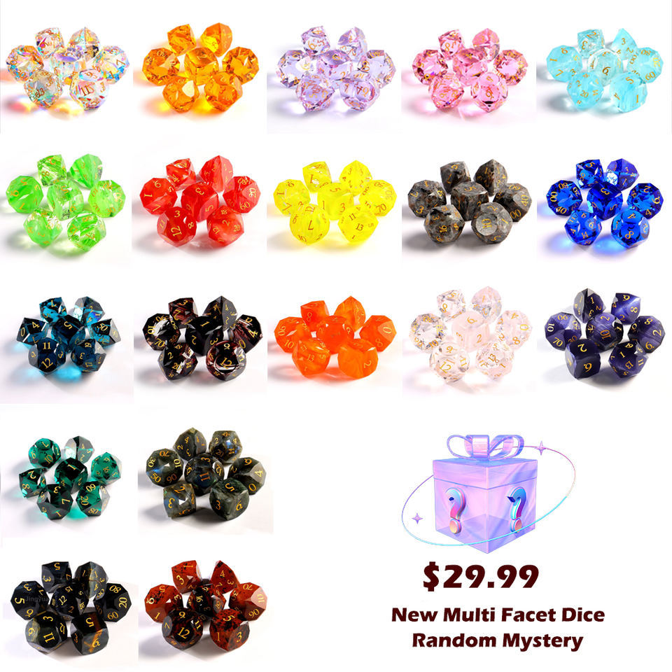 Nouvel ensemble de dés polyédriques faits à la main en verre de cristal, 7 pièces, accessoires de jeu, dés en pierres précieuses pour DND, sac mystère aléatoire multi-facettes