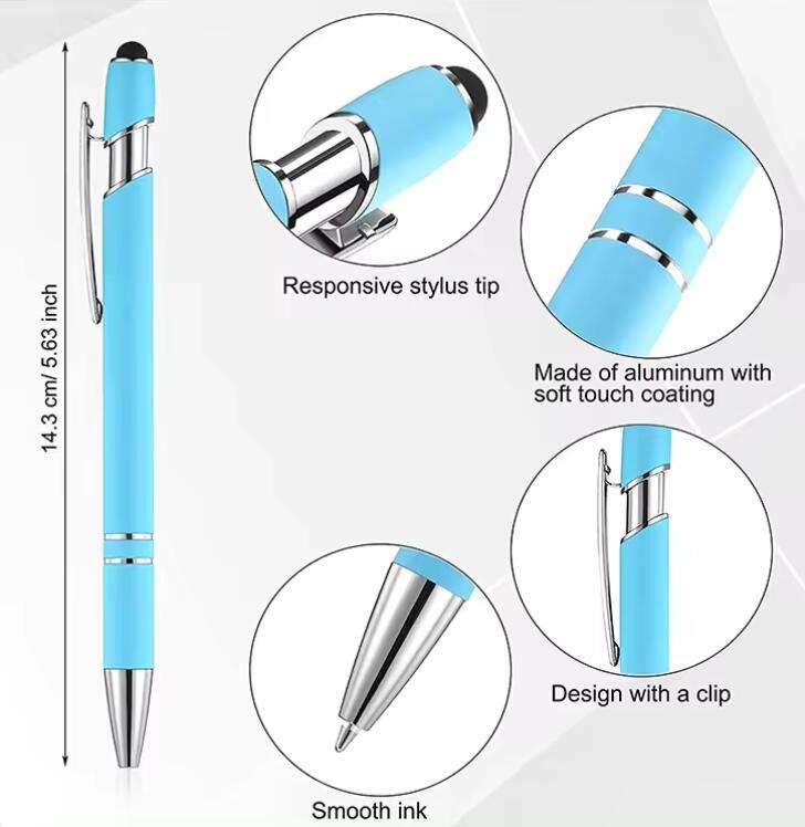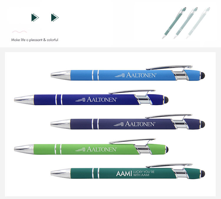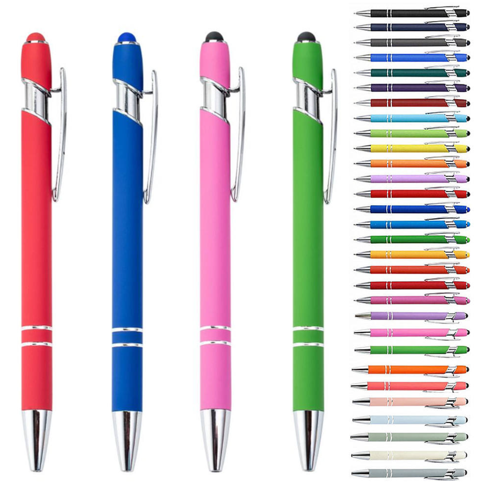 Nouveau stylo multifonctionnel 2-en-1 à écran tactile souple, logo gravé au laser, stylo en métal recouvert de caoutchouc