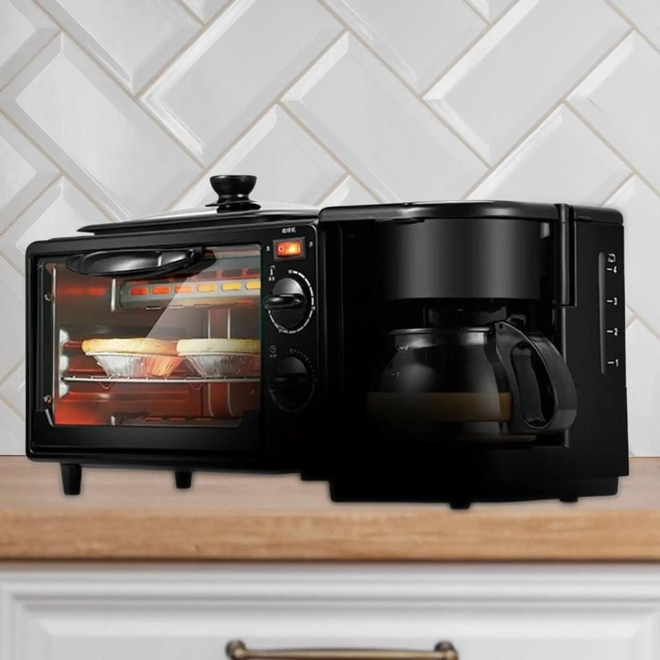 Nouvelle machine à petit-déjeuner multifonctionnelle 3-en-1 avec couvercle en verre, grille-pain portable, mini-four avec cafetière, appareil à sandwichs pour la cuisine
