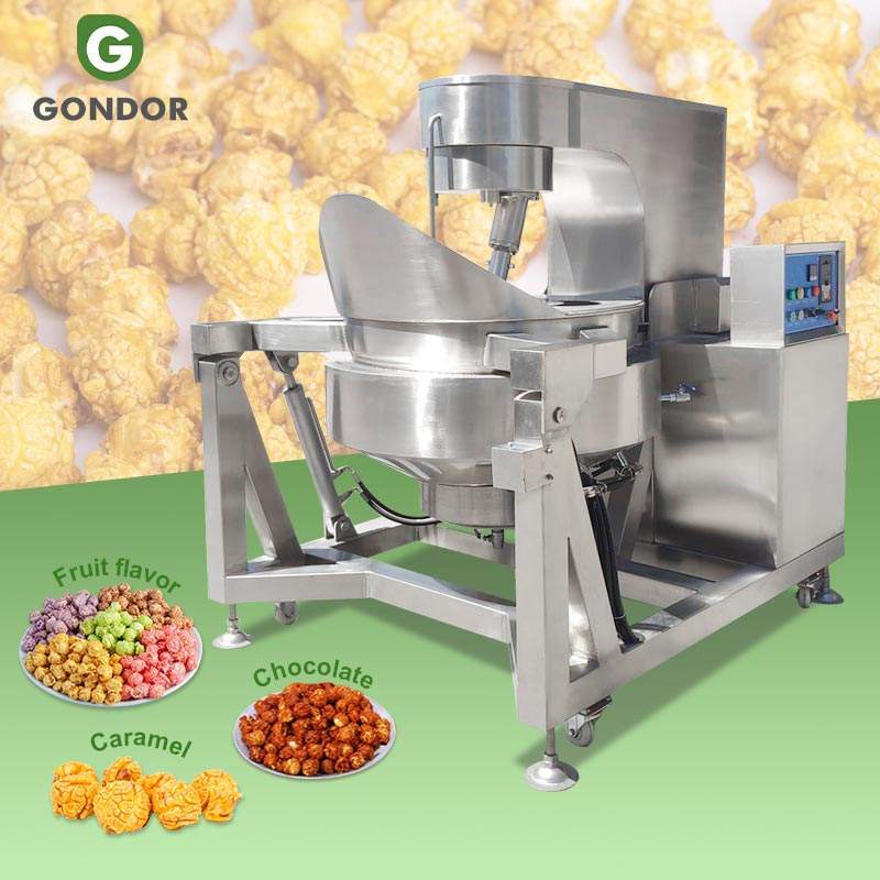 Nouvelle ligne de production de popcorn à haute productivité, à grande échelle, commerciale, en acier inoxydable, caramel, micro-ondes, gourmet