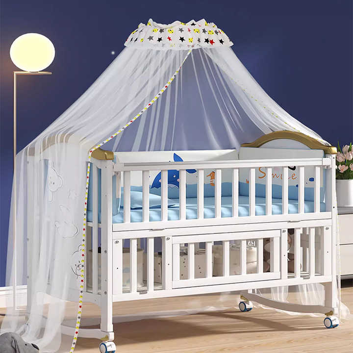Nouveau Lit Bébé Berceau Mobile en Bois Balancelle avec Moustiquaire Ensemble de Literie pour Nourrissons