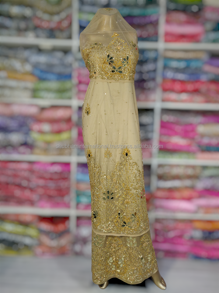 Caractéristique:Dentelle nette perlée lourde + tissu en soie